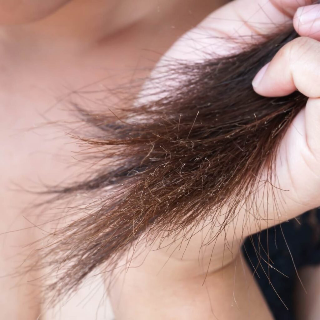 Capire se le punte sono rovinate è semplice se si osservano attentamente alcuni segnali caratteristici. Il più evidente è la presenza delle doppie punte, cioè quando l’estremità del capello si divide in due o più filamenti. Oltre a questo, le punte appaiono spesso secche, ruvide e opache, con un aspetto spento e poco uniforme rispetto al resto della chioma.